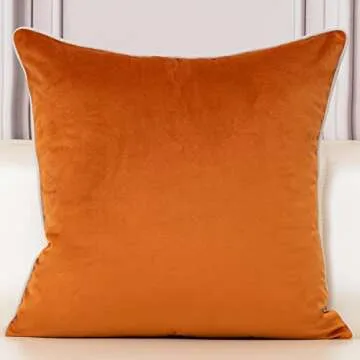 Aeckself European Floral Pillow Cover 18x18 Inch, Luxury Velvet Embroidered Decorative Throw Pillow Cover for Couch Bedroom Living Room, Burnt Orange and White