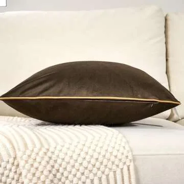 Aeckself Pack of 2 Dark Brown Velvet Pillow Covers 20 x 20 Inch, Modern Luxury Decorative Pillowcase with Gold Trim Edge, Comfortable Soft Solid Cushion Case for Couch Bedroom Living Room