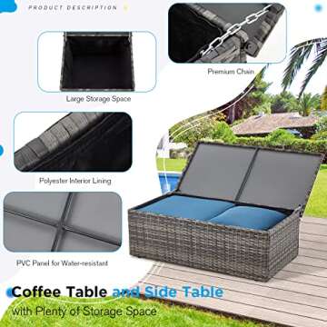 Show moreTransform your outdoor space into an oasis of comfort and style with the AECOJOY 7 Pieces Patio Furniture Set. This exquisite outdoor rattan conversation set is a perfect blend of functionality and elegance, designed to withstand all-weather conditions while providing a cozy seating arrangement for your garden, backyard, or deck. Crafted with durable all-weather PE wicker, this set not only enhances the aesthetic appeal of your outdoor space but also promises longevity and resilience against the elements. The inviting grey rattan paired with dark blue cushions adds a touch of sophistication, ensuring you and your guests can unwind in luxury.