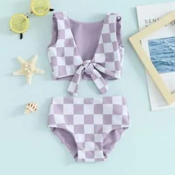 Featuring a stunning checkered pattern, this adorable two-piece set includes a stylish knotted front top paired with matching high-waisted bikini bottoms. This chic and fashionable design is perfect for your growing toddler, ensuring she looks cute and feels confident. Whether it's a day at the pool or a beach outing, this swimsuit is the ideal choice for making first memories!