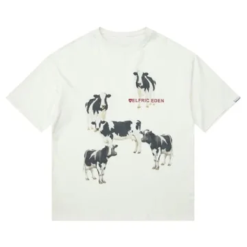 When stacked against other graphic tees available on the market, the Aelfric Eden Dairy Cow Print Tee distinguishes itself with its excellent fabric quality and striking design. Unlike many thinner graphic tees that can fade and lose shape after washing, this shirt boasts a thicker construction that retains its integrity through numerous cleans. Furthermore, the distinct Japanese aesthetic reflected in its design sets it apart from generic options, bringing a unique flavor into your wardrobe.