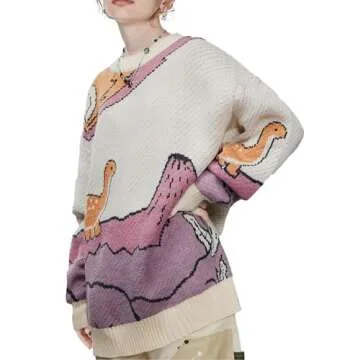 Show more Introducing the Aelfric Eden Graphic Christmas Sweater - your go-to pullover for effortlessly showcasing both warmth and style this festive season! Crafted from a blend of soft and skin-friendly fabrics, this oversized crewneck sweater promises comfort without compromising on cool. With a whimsical dinosaur graphic and a trendy color-blocking design, it's perfect for those who love to stand out while staying cozy. The dropped shoulder feature adds a bit of relaxed flair, making it an ideal choice for casual outings, holiday gatherings, or simply lounging around. Its versatile beige color complements any outfit, creating endless styling possibilities!