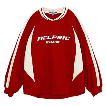 Show more Introducing the Aelfric Eden Oversized Crewneck Sweatshirt, your ultimate fashion staple that captures the essence of vintage streetwear while ensuring optimal comfort. This stylish sweatshirt features a bold red and white color scheme that effortlessly revives retro vibes and makes you the center of attention wherever you go. Made from top-notch materials, this piece offers a remarkable level of comfort, providing you with a relaxed yet trendy fit, perfect for any occasion.