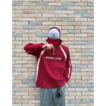 Aelfric Eden Vintage Striped Quarter Zip Sweaters for Women Knit Long Sleeve Drop Shoulder Pullover Sweater Y2K Fall Outfits Red X-Small