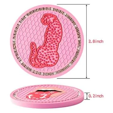 AellasNervalt 4Pcs Preppy Car Cup Coaster Smile Face Lightning Bolt Leopard Lip Bling Rhinestone Silicone Drink Coasters Non-Slip Heat Resistant Cups Mat Cup Holders Auto Accessories for Girls 2.8 in