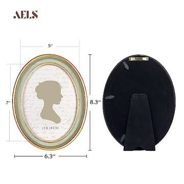 Introduce a touch of elegance into your home with the AELS 5x7 Inch Vintage Picture Frame. Expertly crafted to embody the beauty of yesteryear, this antique-style photo frame features an ornately designed polyresin construction, brushed with tasteful hues that highlight its European vintage aesthetic. Its sophisticated oval shape, adorned with a delicate gold trim, provides a stylish backdrop to your cherished moments, blending seamlessly with any décor while showcasing your favorite photographs...