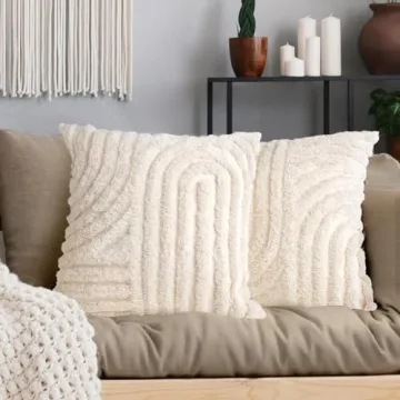Show more Introducing the AELS Boho Decorative Textured Throw Pillow Covers, a delightful addition designed to elevate your home decor to new heights. These pillow covers not only embrace the modern aesthetic but also evoke nostalgia with their exquisite mid-century boho design. Crafted from 100% natural cotton, each piece showcases exceptional craftsmanship, combining a distinctive texture reminiscent of luxurious linen with a softness that invites comfort. Available in a creamy off-white shade, these covers provide a neutral backdrop that seamlessly integrates into any decor style, ranging from rustic farmhouse to contemporary living spaces.