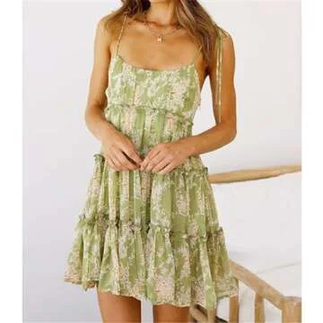 AELSON Sundresses for Women 2024 Floral Summer Dress Boho Flowy Cute Dresses Spaghetti Strap Sleeveless Ruffle Mini Dress