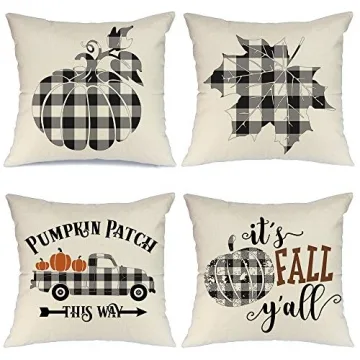 Transform your living space into a cozy, autumnal haven with the AENEY Fall Decor Pillow Covers. This exquisite set of four 18x18 inch pillow covers is designed to elevate your fall decorations while encapsulating the warmth and charm of the season. Crafted with high-quality fabric, these pillow covers feature an inviting buffalo check plaid pattern adorned with delightful pumpkin accents, making them a perfect addition to your home decor for Thanksgiving and beyond.