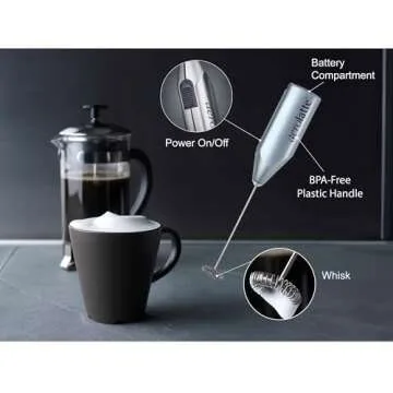 Aerolatte Steam-Free Milk Frother, Satin Finish, 18/8 Stainless Steel Whisk, BPA-Free Plastic Housing, Batteries Included