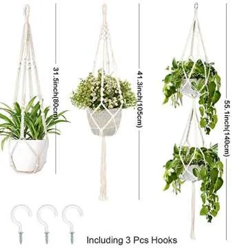 AerWo 3 Pack Macrame Plant Hangers Indoor Wall Hanging Planters+ 3 PCS Hooks, Handmade Hanging Plant Holder Basket Stand Flower Pot Holder for Indoor Outdoor Boho Home Ceiling Decor(4 Legs, 3 Sizes)