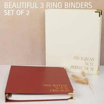 Aesthetic 3 Ring Binder Set of 2 - Sturdy 1 Inch Binder Fits Letter Sized Paper - A Cute Holder for Women or Men with Pocket Easily Organizes Your Paperwork for School, Office or Work