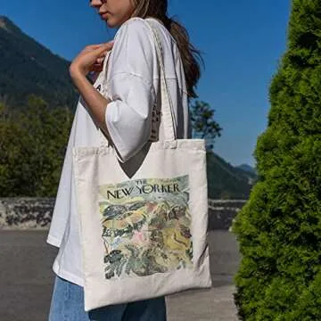 Aesthetic Canvas Tote Bag Women The New Yorker Tote Bag Cute Tote Bags Book Tote Beach Bags Reusable Shopping Grocery Bag