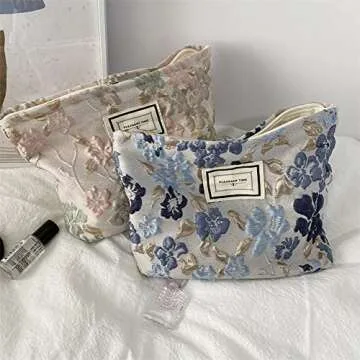 Aesthetic Floral Makeup Bag Coquette Cosmetic Bag Lace Cute Make up Bag Travel Quilted Cosmetic Pouch for Women