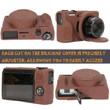 Show moreIntroducing the AEXUTDA Case for Canon Powershot G7X Mark III, the ultimate silicone cover designed to provide an unprecedented level of protection and style for your favorite compact camera. Tailored specifically for the G7 X Mark III, this case ensures every cut and contour is precisely adapted, allowing you to maintain accessibility to crucial buttons and ports including those for the microphone, headphone jack, tripod, and other essential accessories. Crafted with sophistication in mind, this cover not only safeguards your camera but elevates its aesthetic appeal with its modern design.