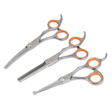 Show more Introducing the AEXYA Premium Scissors Grooming Set, an essential tool for every pet owner who desires to groom their furry friends like a professional. This incredible set is tailored to meet the needs of both home groomers and professional stylists, ensuring your pets look their absolute best. With its four primary tool pieces, the set allows for effortless cutting and thinning of fur, enabling you to follow the natural curves of your pet's body with precision. The thoughtfully designed tools also ensure a safe grooming experience, even in the most sensitive areas.
