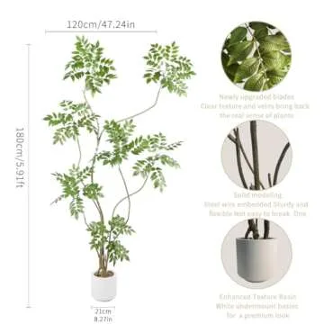 Show moreTransform your living space with the stunning AfanD Artificial Sumac Tree. Standing at a commanding height of 6 feet, this lifelike faux tree is designed to add a touch of natural beauty to your home or office. Crafted to mimic the appearance of the real Mahonia fortunei, the tree features lush green foliage that is both vibrant and realistic. Its elegant slender, twisting branches flow beautifully, allowing it to effortlessly enhance a variety of settings. This isn't just a decorative item; it's a statement piece that can enliven any corner of your home or workspace without the hassle of live plants.
