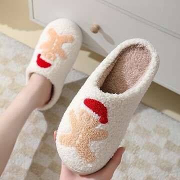 Show moreStep into the festive spirit with our adorable Cute Gingerbread Man Slippers, the perfect accessory for cozy winter nights. Designed with a breathable knitted upper featuring a charming Christmas Gingerbread pattern, these slippers not only keep your feet warm but also allow you to embrace your fashionable side even in the cold season. The exquisite craftsmanship evident in these slippers ensures that you can wear them while curling up by the fireplace or enjoying a holiday movie marathon with loved ones.