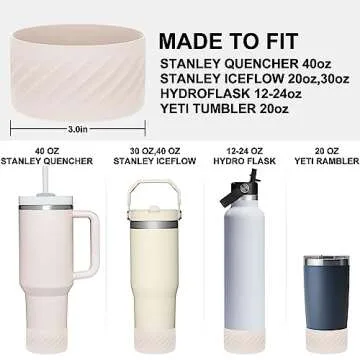 Affute Protective Silicone Boot for Stanley Quencher H2.0 40 oz & IceFlow Flip 20 oz 30 oz and hydroflask 12-24 oz, Anti-Slip Bottle Bottom Sleeve Cover (Rose Quartz)