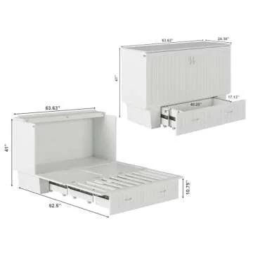 AFI, Nantucket Queen Murphy Bed Chest with Mattress, Storage Drawer and Built-In USB Charger, White