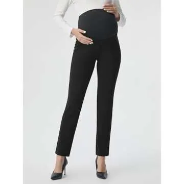 AFITNE Maternity Pants for Work Over The Belly Straight Leg Dress Pants Strethy Pregnancy Office Casual Yoga Pants 31" Black XL