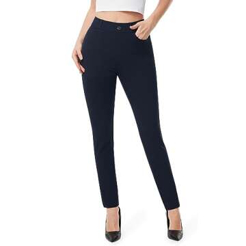 Show moreIntroducing the AFITNE Women's Yoga Dress Pants - a revolutionary blend of style and comfort that defies the norms of traditional office wear. These skinny pull-on pants are designed to mimic the luxurious feel of yoga pants while maintaining a professional appearance suitable for any business environment. Made with a high-quality blend of materials, including spandex, these pants offer 4-way stretch technology that accommodates your every move, making them perfect for both rigorous workouts and long office hours. Available in a chic navy color, they effortlessly elevate your wardrobe and become a versatile staple in your closet.