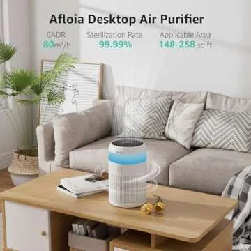 Show moreDiscover the transformative power of the Afloia Mini Air Purifier, your personal ally for achieving a cleaner and fresher environment. With its compact dimensions of just 6.3 x 6.3 x 10.3 inches, this portable air purifier is specifically designed for those who value efficient, on-the-go solutions. Ideal for bedrooms, offices, or kitchens, this sleek device fits effortlessly on your desktop, providing you with fresh air exactly where you need it. Equipped with a 360-degree air inlet and a high-performance 3-stage filter, it effectively purifies the air in spaces up to 250 ft², cycling through the air four times each hour. Say goodbye to common allergens such as pet dander, dust, and smoke, as it captures particles as small as 0.03 microns, giving you 99.99% purified air, which is perfect for allergy sufferers and those seeking relief from air pollutants.