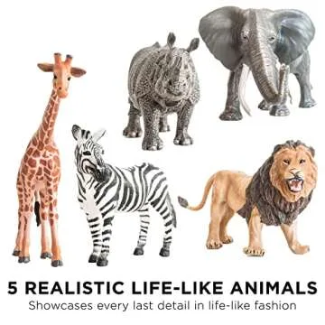 African Animals Figurines Set - Safari Animal Toys Collection | 5 Classic Animal Figurines | Realistic Zoo Animals Figures for Kids 3-5 - Interactive Play with Two-Part Matching Cards