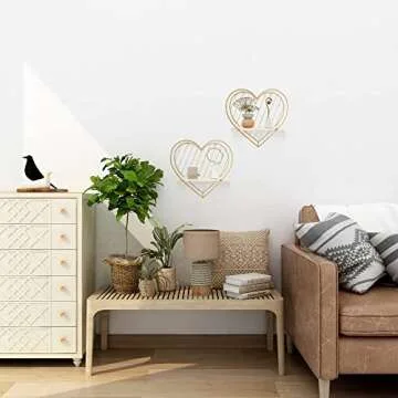 Afuly Floating Shelf Wall Mounted Gold Heart Shaped Hanging Shelves for Wall Modern Minimalist Shelf Storage Organizer Rack for Bedroom Living Room Nursery Room Decor Christmas