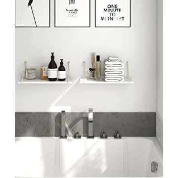 Afuly Floating Shelves for Wall, Metallic Gold White Wall Mounted Shelves, Wall Shelves for Bathroom Kitchen Bedroom Solid Wood Metal Chic Wall Bookshelf, Set of 2