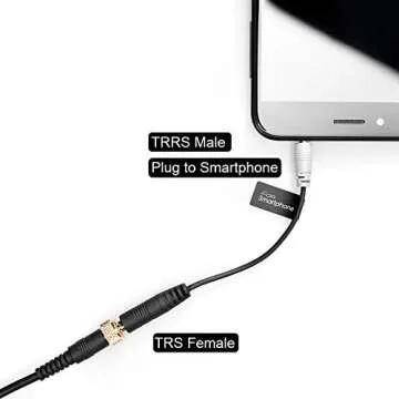 The adapter features a male connector on the grey end that easily plugs into your smartphone, while the female connector on the black end accepts standard 3.5mm TRS microphones. Whether you’re a filmmaker capturing moments on-the-go or a podcaster wanting to enhance your recording setup, this adapter is a must-have.
