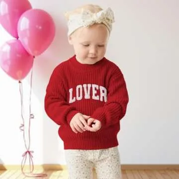 AG AGUU Valentines Sweater for Toddler Baby Girl Boy Lover Letter Embroidery Knit Pullover Tops Holiday Outfits Clothes(Red,3T)