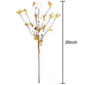 - Beautifully Detailed Design: With 4 lifelike cotton flower heads per stem and a sprinkling of autumn-inspired yellow leaves, these stems offer a delightful pop of color.
