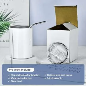 AGH 12 oz Sublimation Tumblers, 6 Pack Straight Tumbler with Lid and Straw, White Flat Cups
