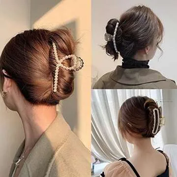 Agirlvct Pearl Hair Clip Set - Durable & Stylish Metal Claw Clips for Women