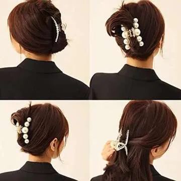 Agirlvct Pearl Hair Clips,Elegant Hair Clip Strong Hold Jaw Clips,Big Pearl Hair Claw Clips Barrettes Nonslip Birthday Thankgiving Christmas Gift for Women Girls Daughter Girlfriend (6 Pack)