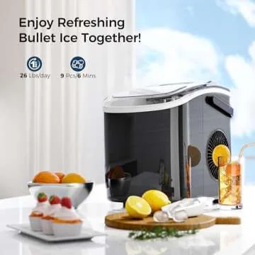 Show more Introducing the AGLUCKY Ice Maker Countertop, the ultimate solution for your ice-making needs! This portable ice maker is equipped with a powerful R600a high-quality compressor, which allows you to produce approximately 9 ice cubes in just 6-13 minutes. In a day, this compact wonder can generate about 26 lbs of bullet-shaped ice, ensuring you'll have a constant supply of fresh ice for all your beverages and entertaining needs. Its sleek stainless steel design not only adds elegance to your kitchen or bar but also combines style with functionality, making it a must-have appliance for any home.