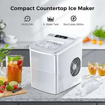 AGLUCKY Ice Makers Countertop with Self-Cleaning, 26lbs/24hrs, 9 Cubes Ready in 6 Mins, Portable Ice Machine with 2 Sizes Bullet Ice/Ice Scoop/Basket for Home/Kitchen/Office/Bar/Party, Grey