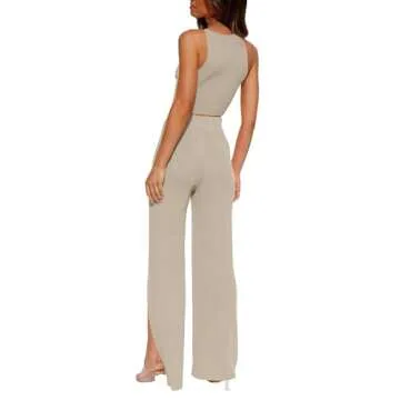 Show moreIntroducing the **AGSEEM Loungewear for Women 2 Piece Set**, a stylish and versatile summer outfit featuring a chic cropped tank top paired with wide-leg pants elegantly adorned with side slits. Crafted from a high-quality, breathable fabric, this knitted casual set is not only skin-friendly but also provides the ultimate comfort for all-day wear. Whether you're lounging at home or stepping out for an event, this set is designed to elevate your casual fashion game while ensuring you remain comfortable during the warm spring and summer months. The light khaki hue adds a touch of sophistication, making it an indispensable addition to your wardrobe.