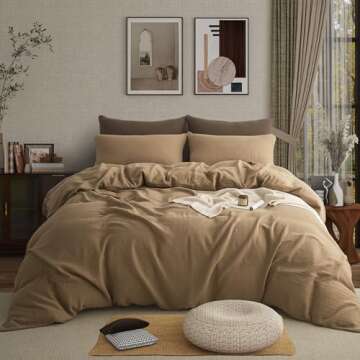 AGSIT Muslin Duvet Cover 100% Washed Cotton, Queen Size Duvet Cover Set Linen Like, Minimalist Soft Comforter Cover 3 Pieces, Lightweight Gauze Duvet Cover with 2 Pillowcases, 90”x90”, Brown