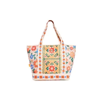 While other totes may offer basic functionality, the AGUA BENDITA Women's Ace Tile Tote stands out with its artistic floral prints and detailed crochet trim, adding a layer of uniqueness that competitors lack. Other bags often prioritize simplicity over style; however, this tote combines both facets seamlessly. Its lightweight structure offers an edge over bulkier alternatives, allowing for a blend of style and comfort throughout your day.