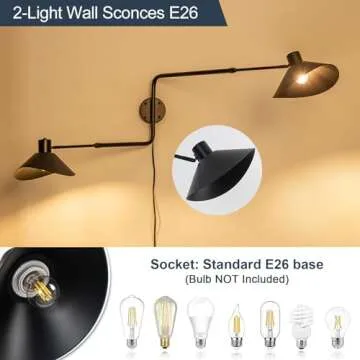 Additionally, this wall light is compatible with E26 socket light bulbs (not included), with a maximum wattage of 40W. If you prefer adjustable brightness, simply use dimmable bulbs along with a compatible dimmer switch to create the perfect atmosphere for any occasion. Elevate your living space with the Ahaloye Big 2-Light Plug in Wall Sconce—where sophistication meets convenience.