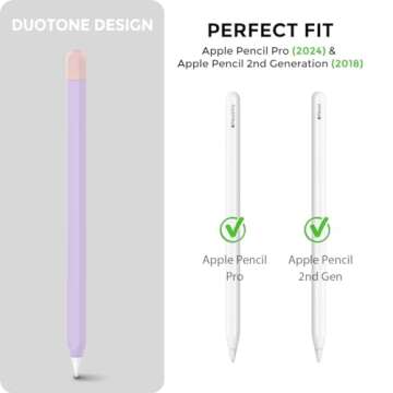 Discover a blend of style and functionality with the AHASTYLE Duotone Case for Apple Pencil. This ultra-thin silicone sleeve is designed exclusively for the Apple Pencil 2nd Generation (2018) and Apple Pencil Pro (2024), ensuring a snug fit that enhances both aesthetics and usability. With a sleek 0.35mm thickness, this case retains the magnetic capabilities of your pencil, allowing you to attach, charge, and pair without hindrance. Say goodbye to slips and scratches as this...