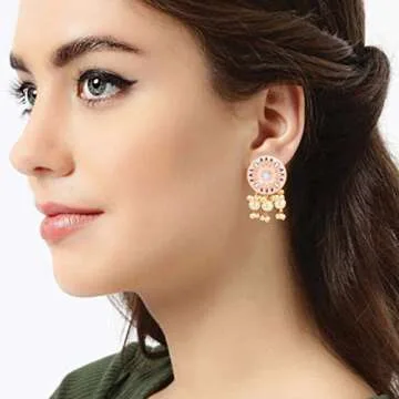 Aheli Indian Traditional Bollywood Pink Handcrafted Meenakari Enamel Choker Necklace with Earrings Set Gift for Women