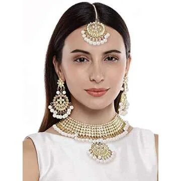 Aheli Indian Traditional Maang Tikka Kundan Necklace Earrings Set for Women