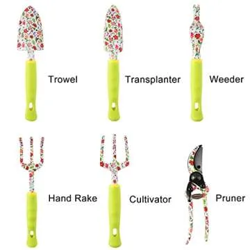 Why You Will Love This Product?Imagine stepping into your garden equipped with tools that not only perform excellently but also uplift your gardening experience through their delightful design. You will appreciate the comfort offered by the ergonomic handles, the durability of your tools made from solid aluminum, and the convenience of the well-organized tote. This garden tool set is not just a functional addition to your outdoor space; it's a beautiful accessory that celebrates the joy of gardening. Each time you use these tools, you'll be reminded of the love and care that goes into nurturing your plants and flowers, creating a deeper connection to your gardening passion.