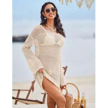 Featuring a chic bell sleeve design, this cover-up offers a flattering silhouette that makes you look slimmer and youthful, a must-have trait for any stylish woman. The long flared sleeves grant you freedom of movement while providing coverage for your wrists, making it a practical choice for beach activities. Whether you are at a pool party or lounging at the beach, this garment will keep you looking effortlessly gorgeous.