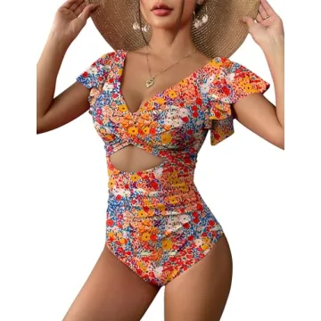 This one-piece features innovative design elements such as a **twist cross front** that enhances your bust while flattering your waist with its **ruched detailing**. The **ruffle sleeves** offer a charming touch, bringing an extra layer of flair to a classic silhouette. Additionally, the swimsuit includes **removable bra pads** for customizable support, ensuring you feel confident and chic. With a **cutout back** that enhances breathability and showcases a hint of skin, this swimsuit perfectly balances modesty with a hint of flirtation.