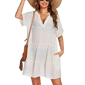 AI'MAGE Women Summer Beachwear Dress V Neck Sexy Loose Flowy Bikini Cover Up Swimwear Dress