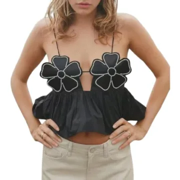 Show moreIntroducing the AIBEARTY Women's Floral Appliques Spaghetti Strap Crop Top, a stunning addition to your summer wardrobe that perfectly combines style and comfort. Crafted from a premium polyester fabric, this sexy flower tank top is designed to be not just visually appealing but also incredibly soft and skin-friendly, making it ideal for warm weather. With its unique floral embellishments, this crop top elevates any casual outfit while providing a modern and feminine flair. Its sleeveless, backless design coupled with delicate 3D flower details and a lace-up self-tie feature make it a standout piece that is both trendy and versatile.
